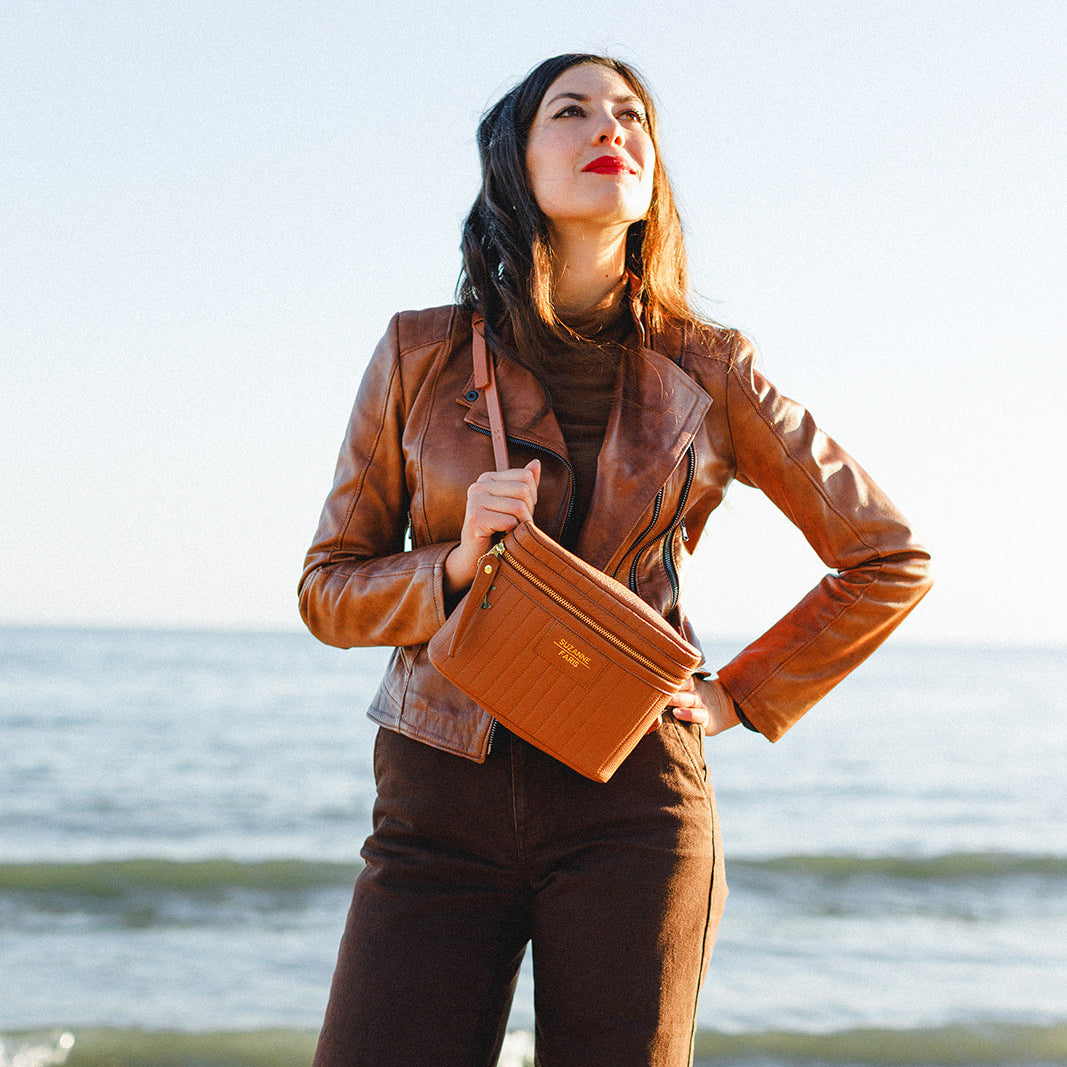 I absolutely love The Trix bag! It has such an elegant look and classic style, and it's the perfect hands-free grab and go bag. The leather is so soft, the stitching is excellent, and Suzanne's attention to detail and dedication to customer service is what keeps me coming back. I now have 3 of these cuties and am eagerly awaiting new colours to add to my collection.