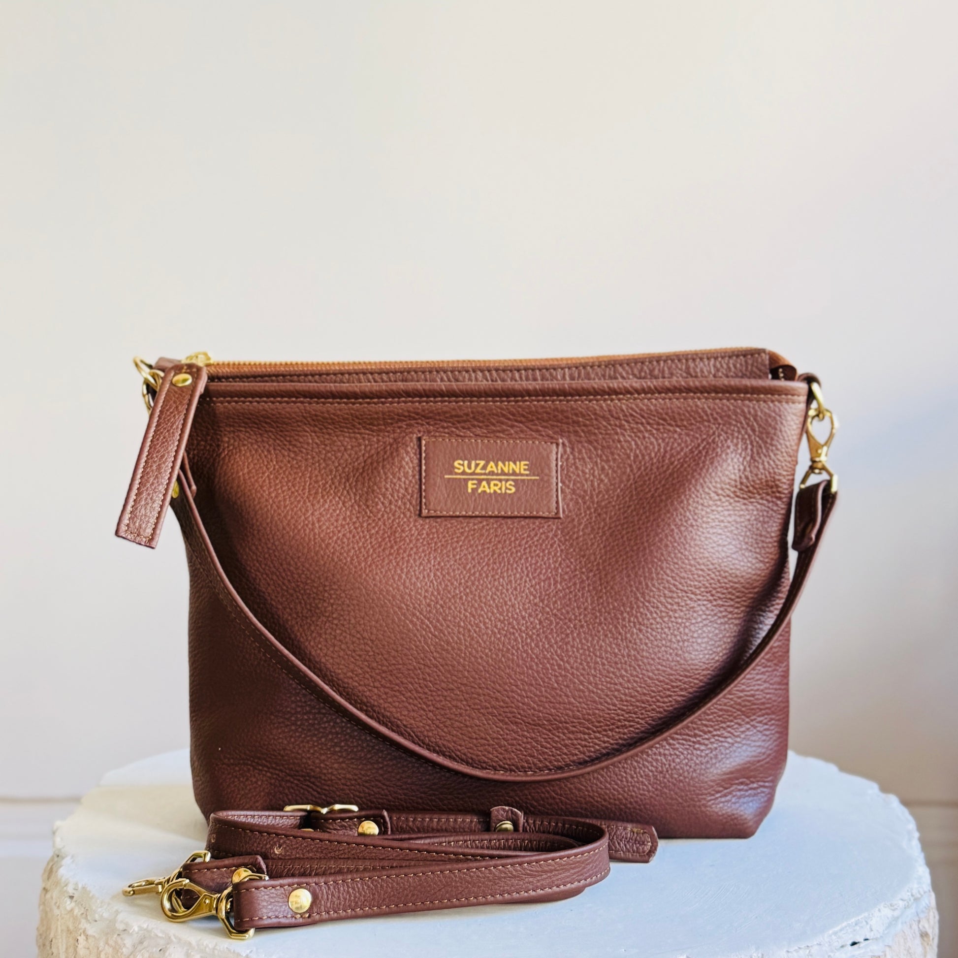 I am very pleased with my Suzanne Faris handbag. The colour is fantastic and goes with everything. The interior pockets are large enough for my needs and I like the fact that the interior colour is not black so that I can easily find things in the bag, which in and of itself is great!