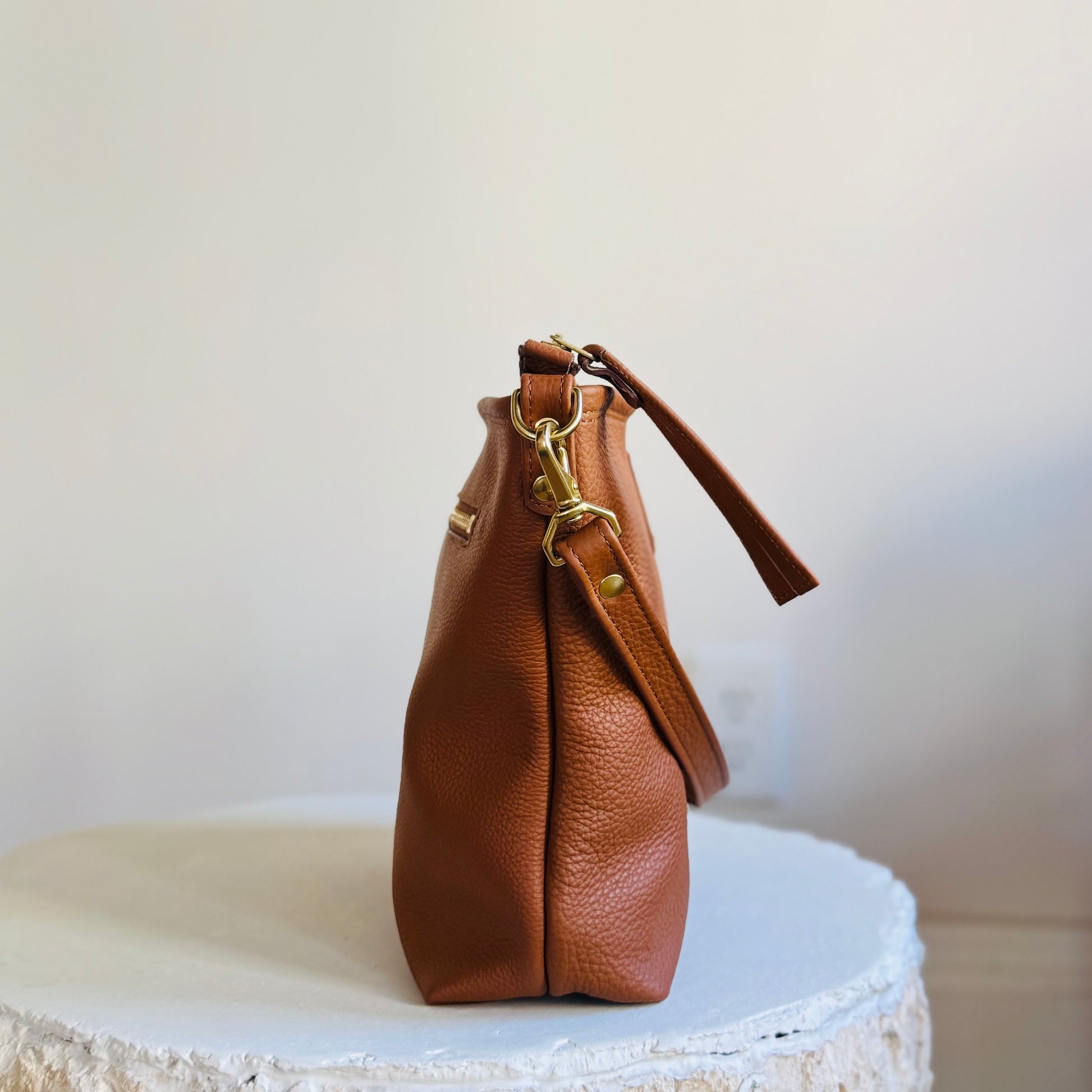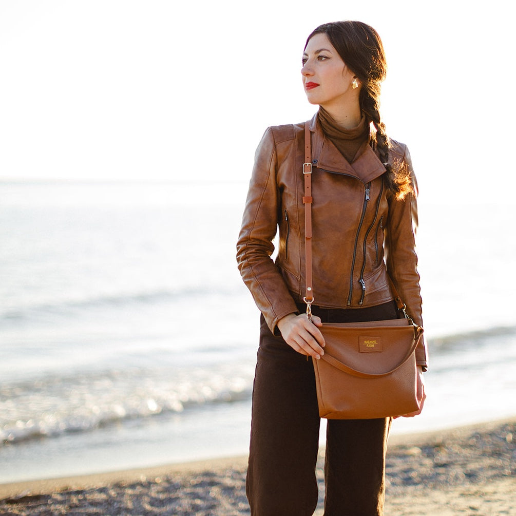 Are the bags real leather? Yes! Leather is durable and long lasting, the perfect material for bags. The hardware is solid brass, so the colour won't chip or fade
