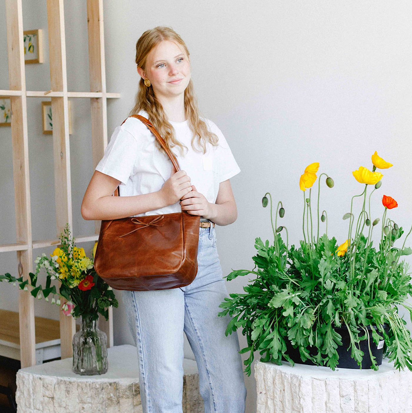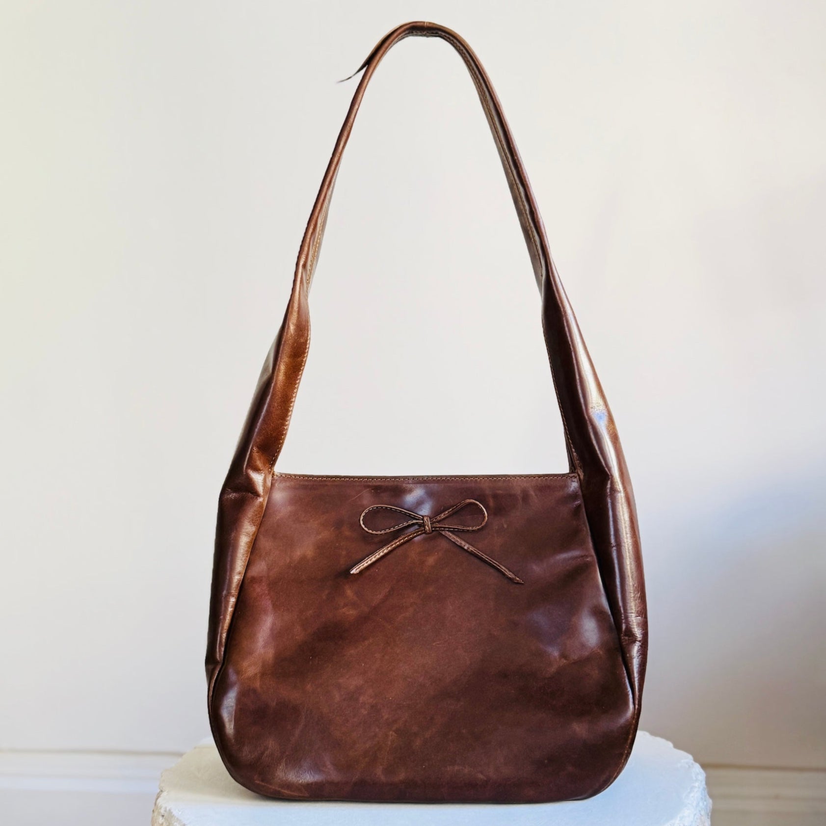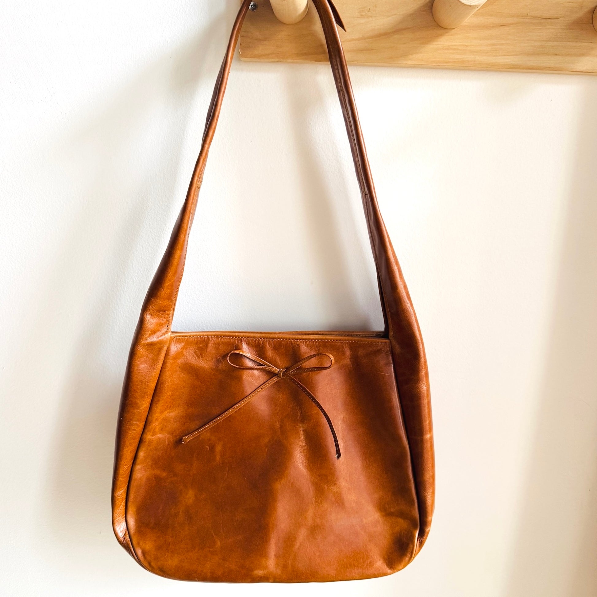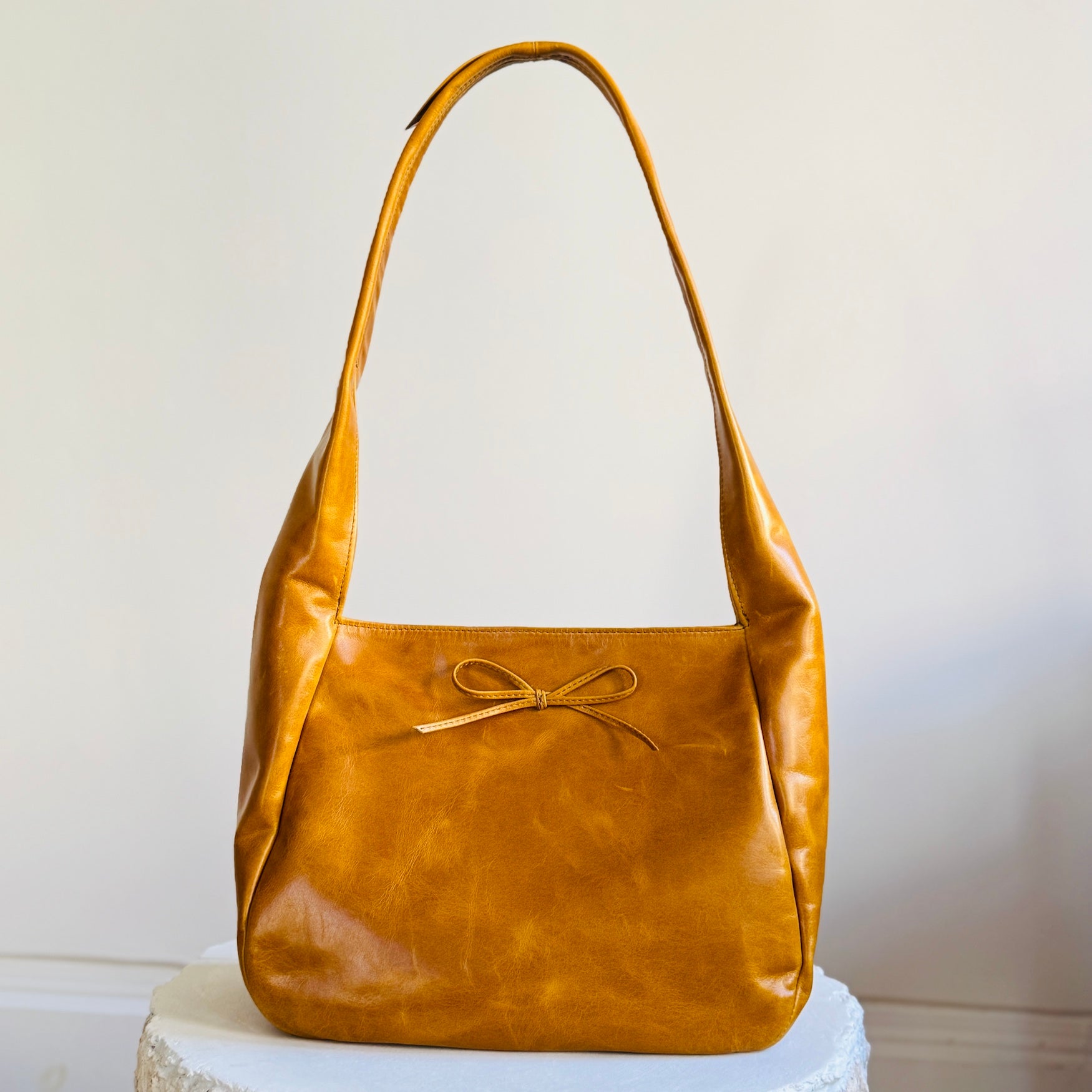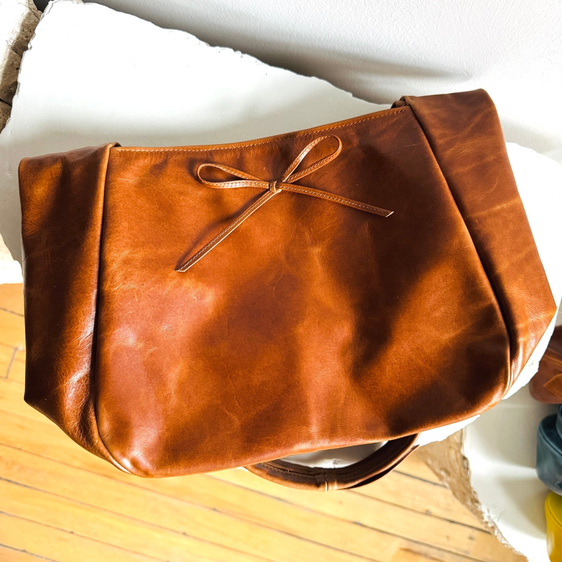 The Harvest Bag is large and unstructured with an easy magnetic closure. Packs flat for travel and holds a surprising amount! Comfortable on the shoulder, a bold choice in rich Italian leather. Full of personality for an elevated look.