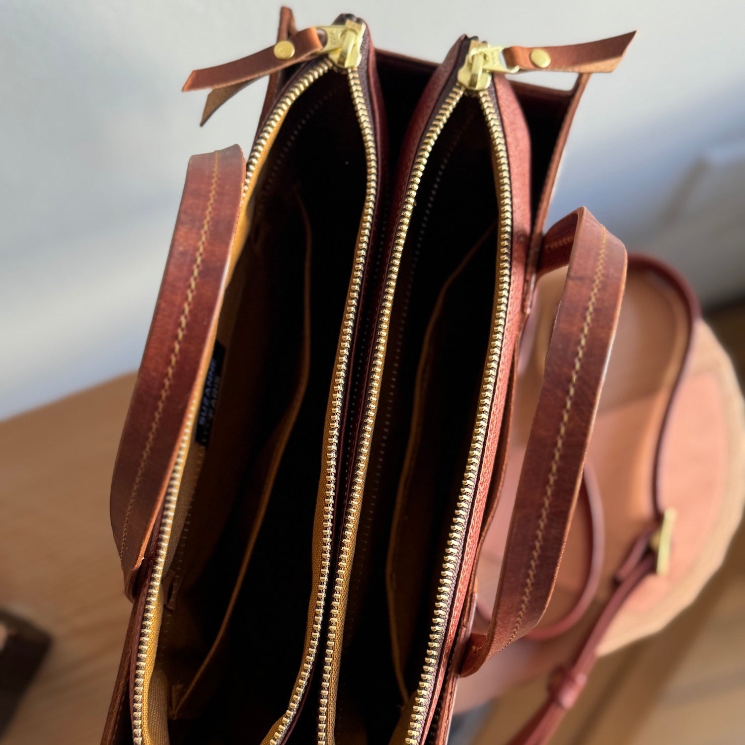 Materials | Leather, Brass hardware, Cotton Canvas, YKK zippers