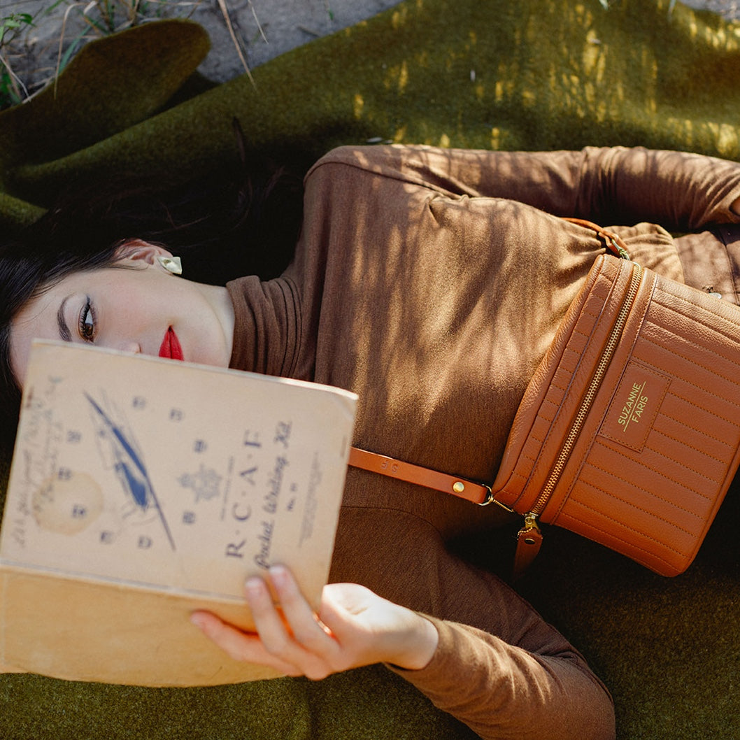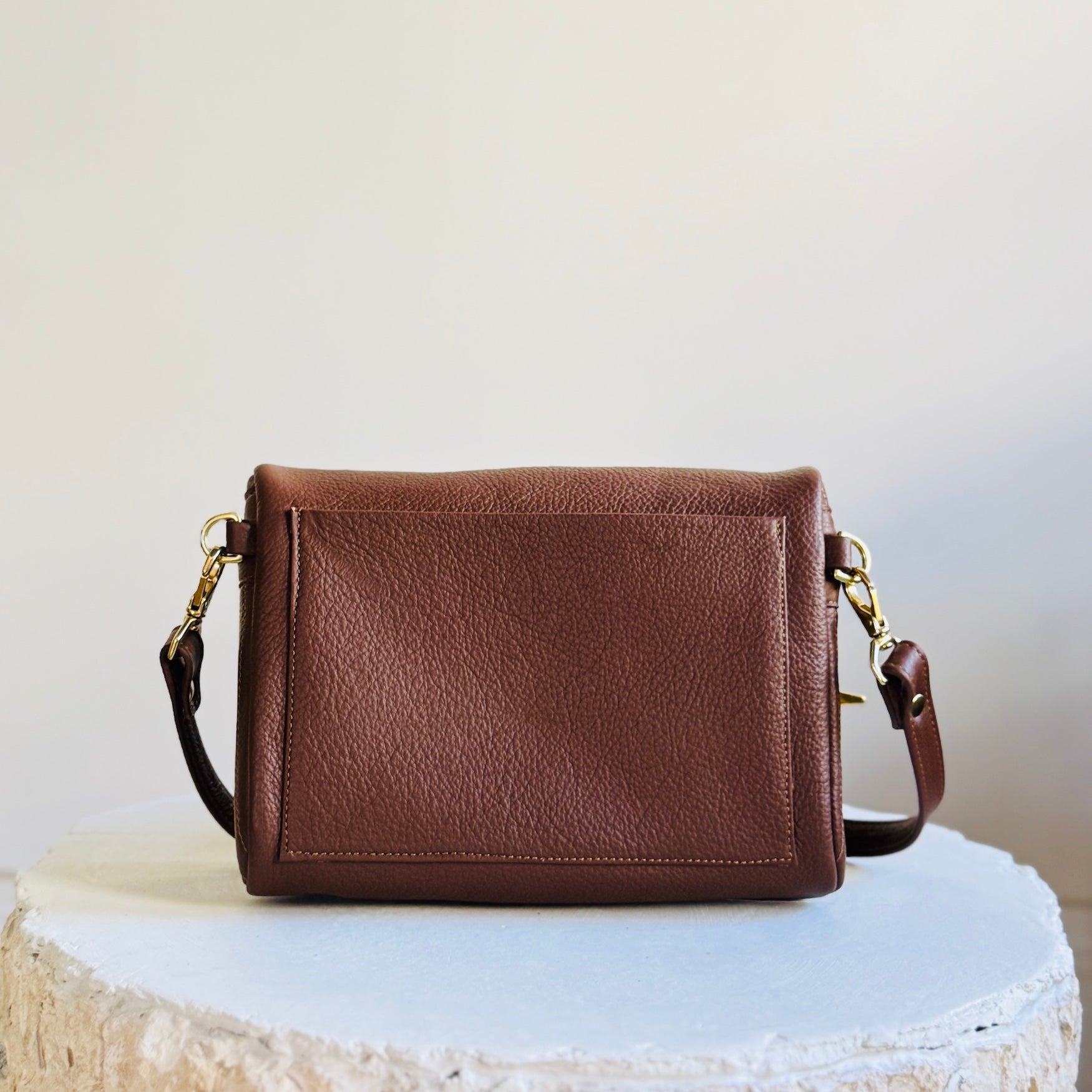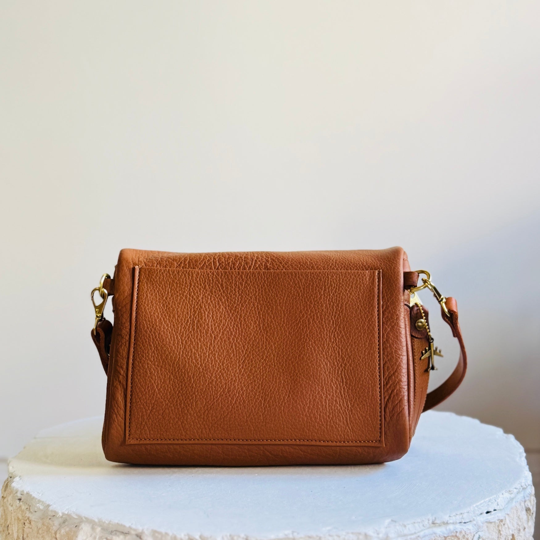 Love the shape and all the details and stitching of this little bag, which surprisingly fits a lot. The leather is soft and light, making this a perfect grab and go bag to hold all your essentials.
