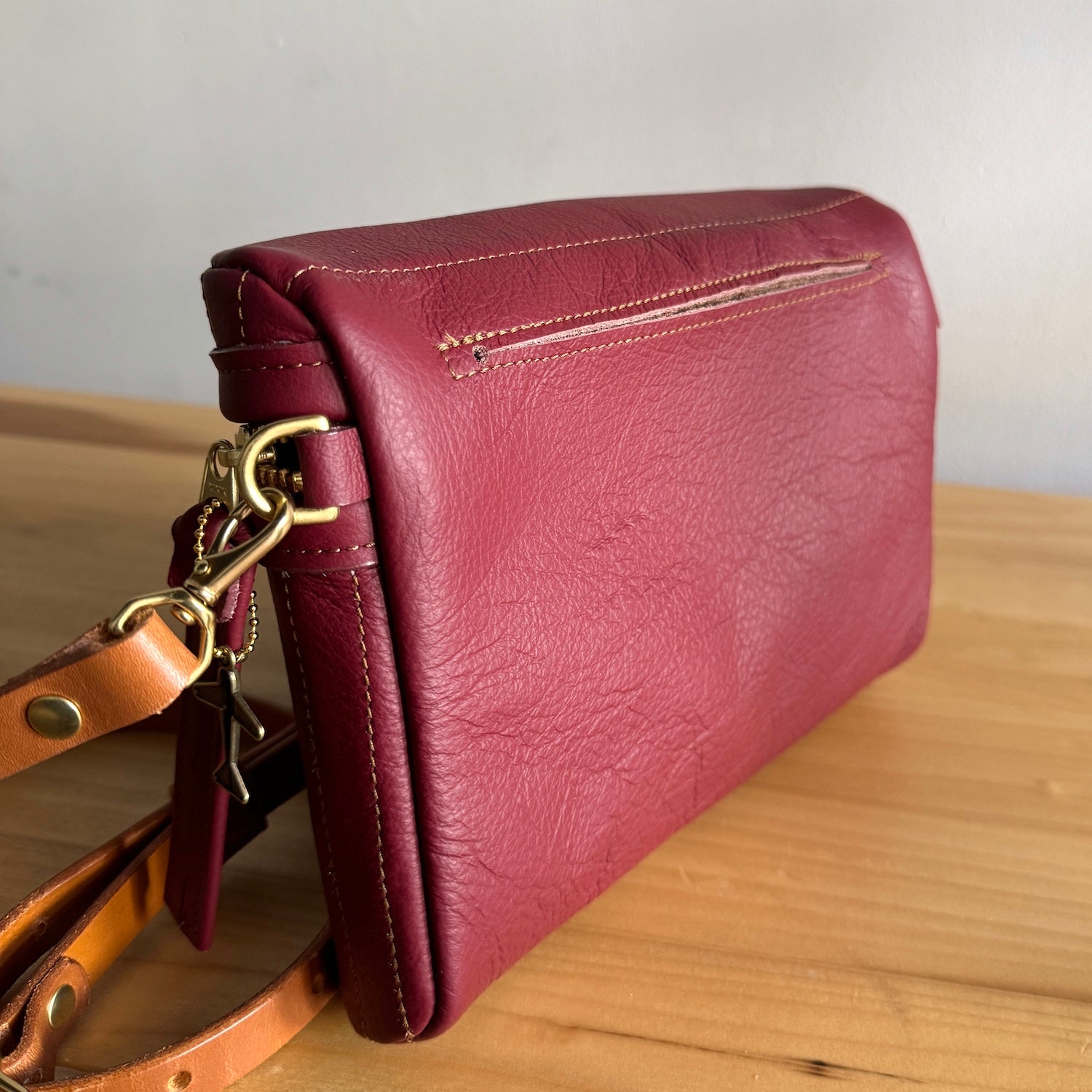 Love the shape and all the details and stitching of this little bag, which surprisingly fits a lot. The leather is soft and light, making this a perfect grab and go bag to hold all your essentials.