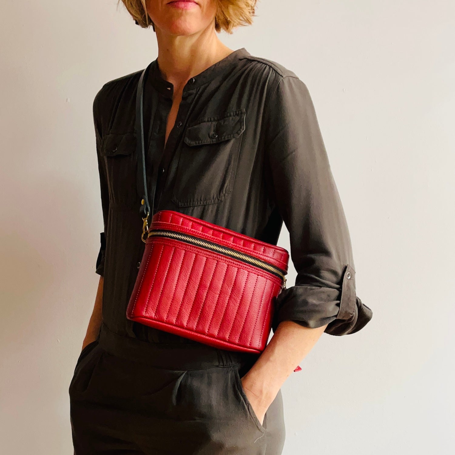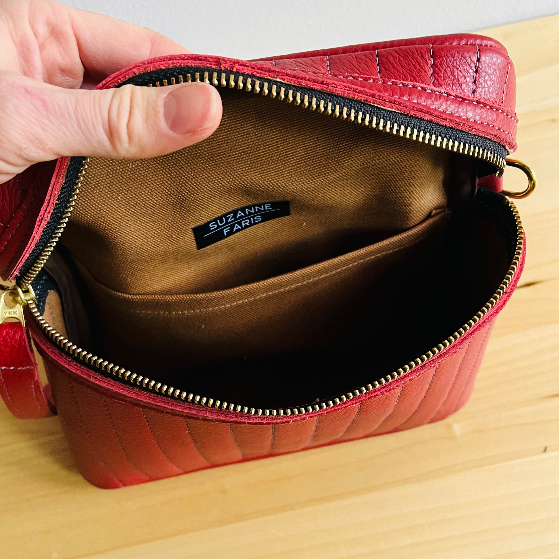 I love my Trix bag in red! Just as described: soft, sumptuous leather that forms to the body. The vertical quilting is exquisite and I love the story behind this collection. Superb craftsmanship and gorgeous little details and leather. The contrasting Tan strap is great too. Thank you!