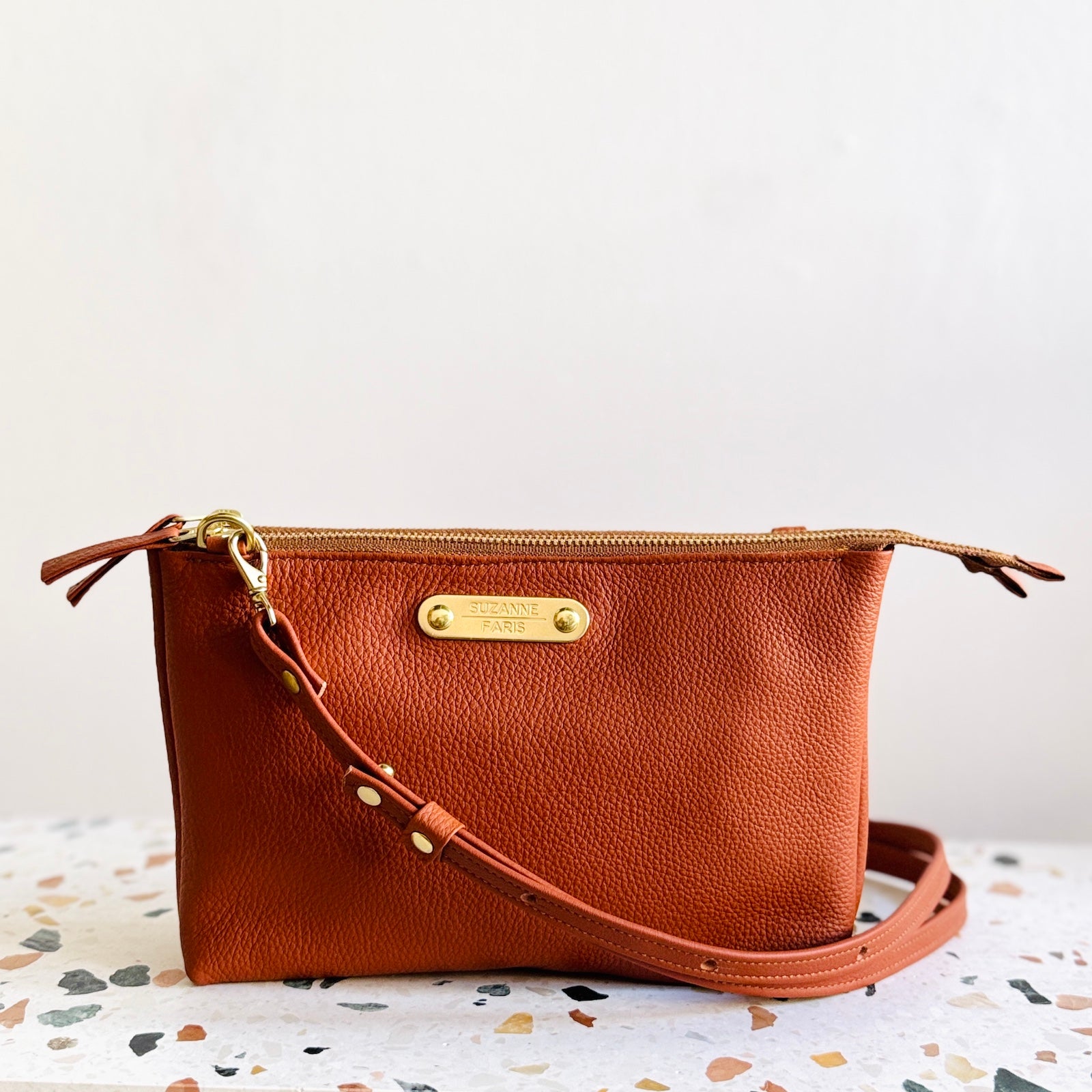 Are the bags real leather? Yes! Leather is durable and long lasting, the perfect material for bags. The hardware is solid brass, so the colour won't chip or fade