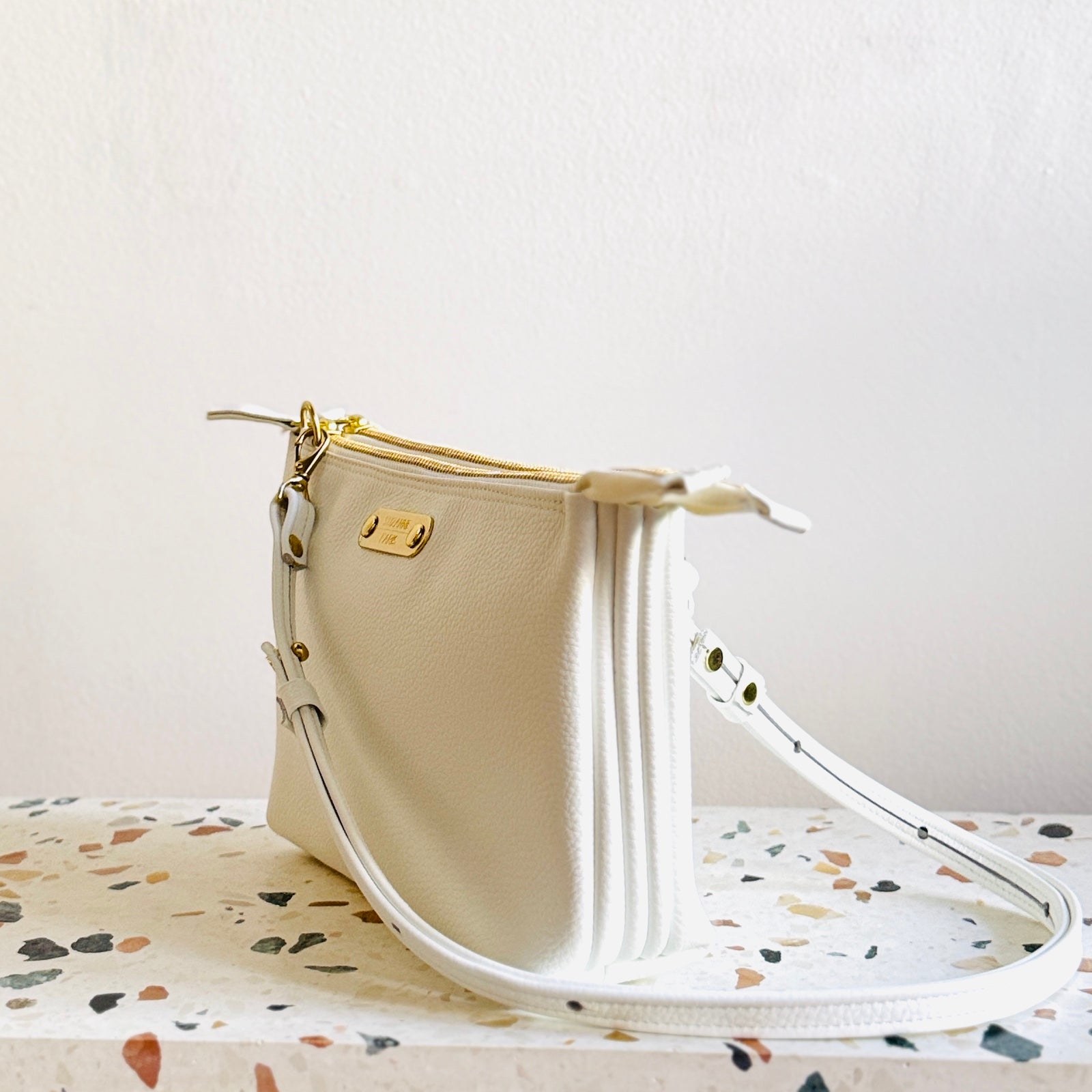 Tidy and organized, the twin tides bag features an adjustable strap from shoulder length to crossbody. Complete with two top zippers and an interior zippered pocket, there's a place for everything.